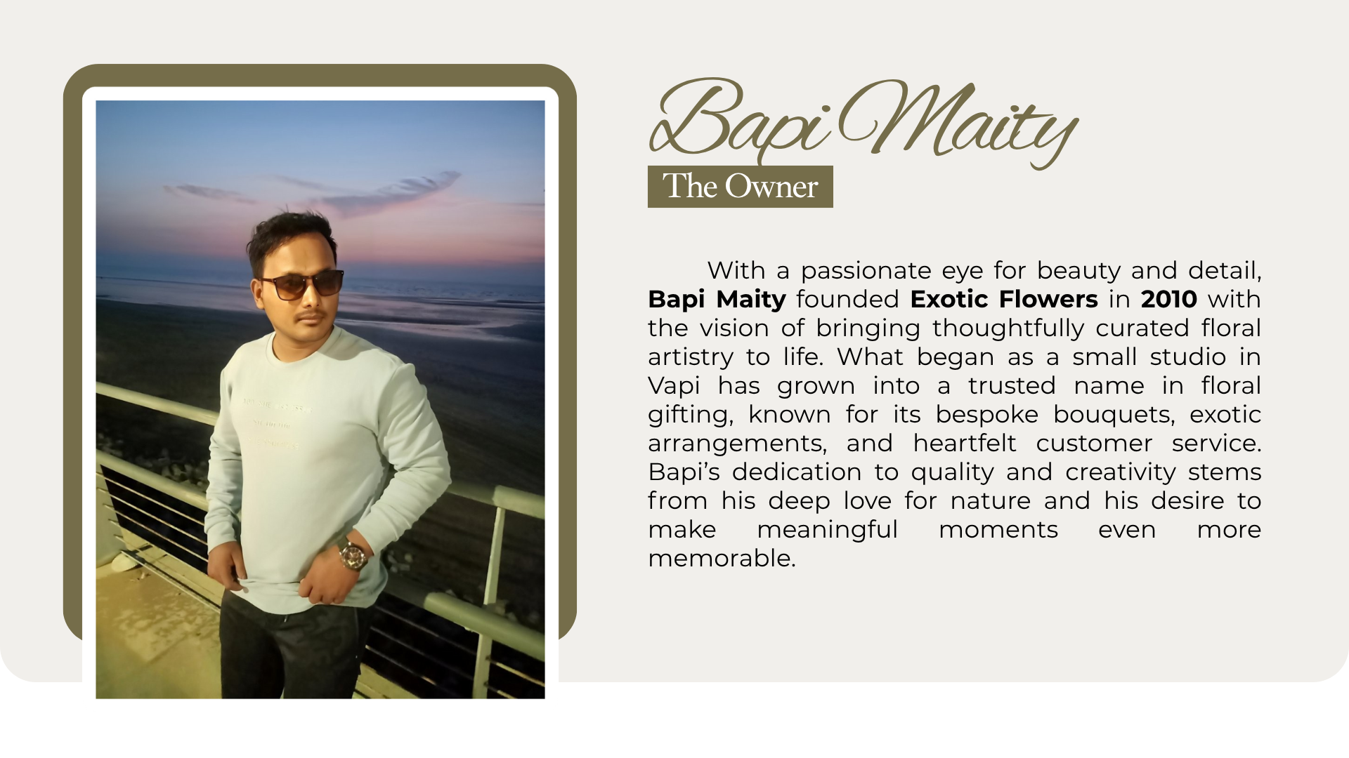 At Exotic Flowers, we transform every event into a floral celebration. Whether you’re hosting a wedding, corporate function, festive gathering, or private party — our expert team crafts stunning floral arrangements that elevate the mood and reflect your unique style. From elegant centerpieces to grand floral installations, we bring your vision to life with freshness and creativity.